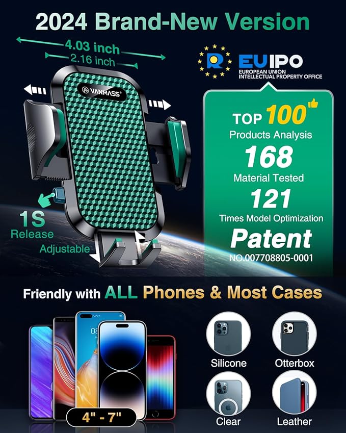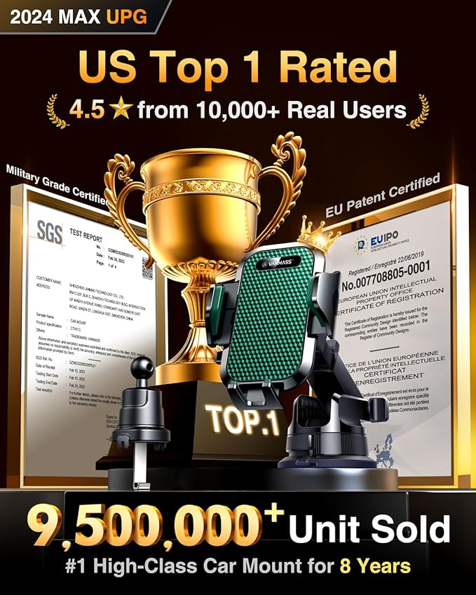 - 【True Military-Grade Certified, Durable & Stable Dual Upgrade】VANMASS, the leader in high-end car phone holder. Over the past 8 years, We have listened to the voices of millions of users, rigorously tested to MILITARY GRADE standards (stability, compatibility, flexibility, security, durability). Finally, we overcome all weaknesses to design the BEST Model that we are most satisfied with. This item obtained military-grade shockproof certification No. GZMR220601855501 and patent No.007708805-0001