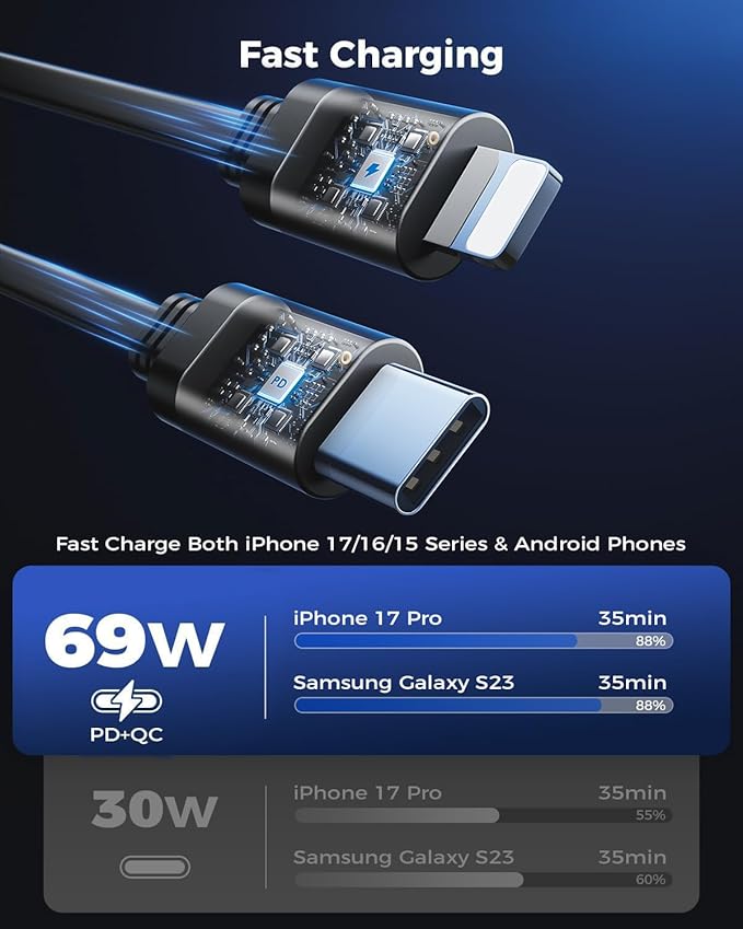 - Upgraded 4-in-1 Fast Charging Solution: Equipped with a real PD30W Type-C retractable cable (fast charging port), an IOS retractable cable, and additional USB-C and USB-A ports, this charger offers fast charging for up to four devices simultaneously. No need for multiple chargers – meet all your charging needs with one compact device.