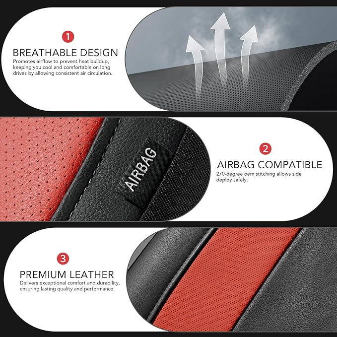 - PREMIUM LEATHER MATERIAL - Perfectly matches your interior look, ensuring your seat covers will last for many years. Refresh your interior with a beautiful design and high-quality materials.