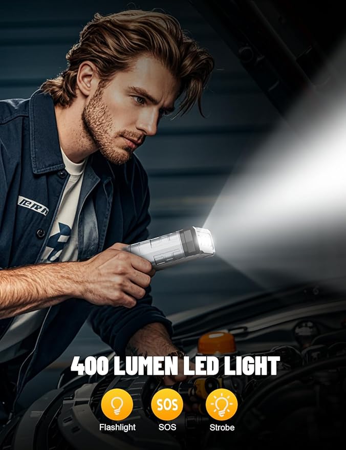 - 【 800 Lumen Lighting】 Say goodbye to old bulky jump start battery pack! Sharmeal is more lightweight and portable. The battery starter utilizes 800-lumen lighting lasting 48h with 3 modes :Flash Light, Strobe Light, and SOS Light.