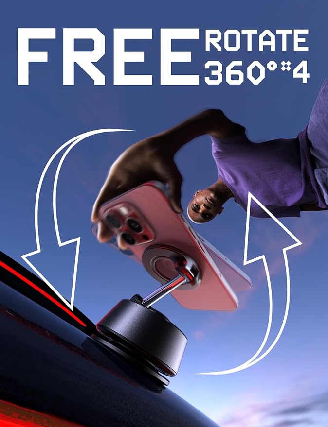 LISEN for MagSafe Suction Car Phone Holder Mount, Electric Vacuum Magnetic Phone Holder Stand, 360ยฐ Adjustable Vlogging Travel, Only for Mirror/Smooth Surface, for iPhone 17 16e 16 Pro Max 15 14 13 12