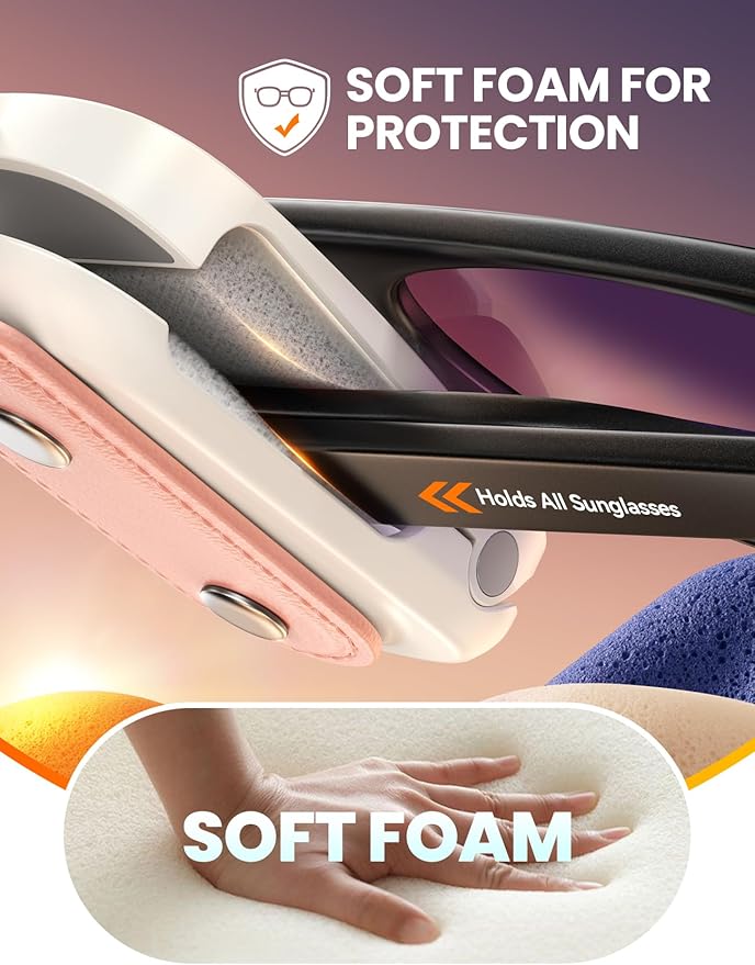 - Universal & Scratch-Free – Protects Everything! Gentle Car Visor Organizer: Soft foam padding shields your sun visor and all eyewear (Sunglasses, Reading glasses, Prescription glasses, Sports sunglasses, etc.) from scratches! Fits temple arms 0.12–1.2 inches wide