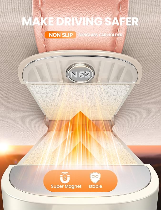 - Rock-Solid Hold (N52 Magnet) – Tested! Durable Car Visor Sunglasses Holder: 2025 upgrade sunglass car holder with industry-leading N52 magnet securely locks sunglasses on visors. Zero slips or drops – even on potholes and after 10,000 test drives